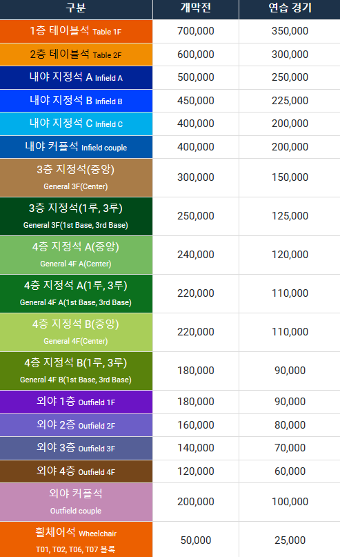 이 가격대를 볼 때, 메이저리그 경기 티켓 가격이 상당히 높게 책정되어 있다는 것을 알 수 있습니다. 예를 들어, 메이저리그에서 여섯 번째로 좌석 가격이 비싼 것으로 알려진 LA 다저스 경기의 가장 저렴한 좌석이 22달러인 것을 감안하면, 한국에서의 개막전 티켓 가격은 상당히 높은 편입니다.